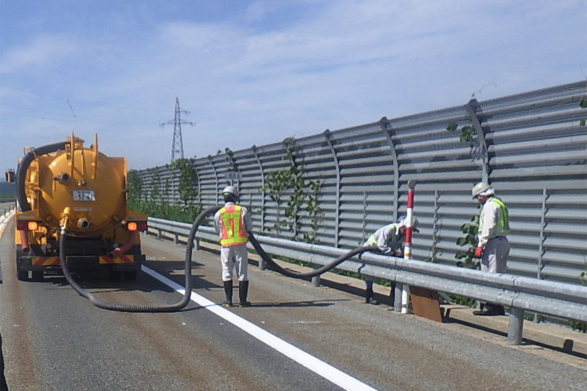 住民の皆様の快適な生活環境を維持するため、強力吸引車や高圧洗浄車、TVカメラ車などの特殊車両を利用し、下水道インフラの維持管理業務を行っています。