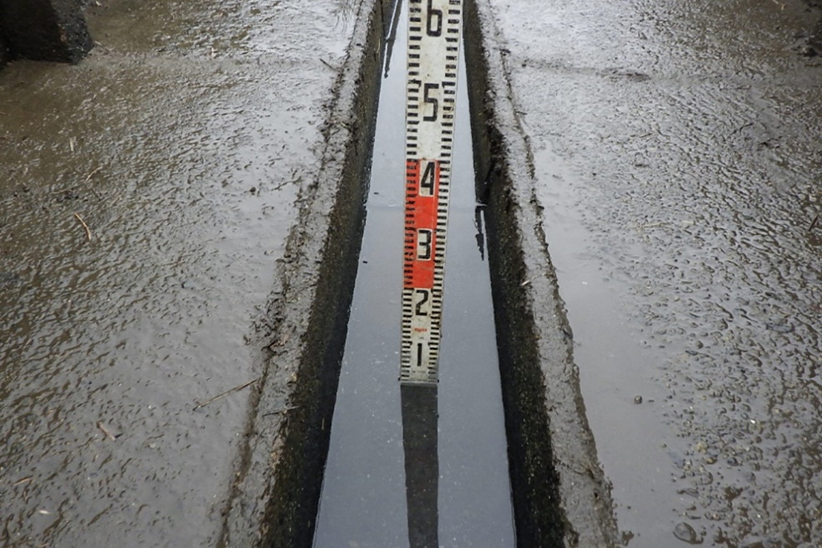 消雪パイプ清掃前(パイプ内に錆がたまっています)