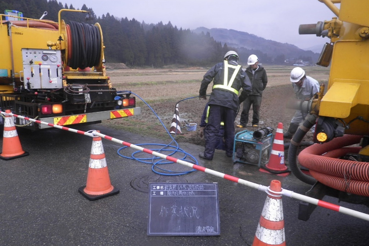 住民の皆様の快適な生活環境を維持するため、大型強力吸引車、高圧洗浄車などの特殊車輌を利用した、様々な維持管理業務を行っています。
